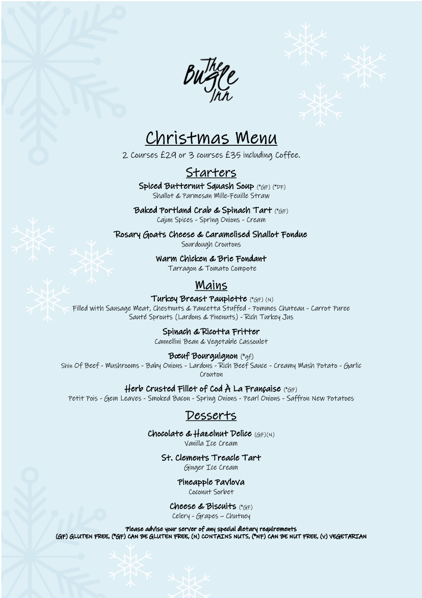 A pre-order and non-refundable deposit of £10 per person will be required from all tables wishing to order from The Christmas Menu